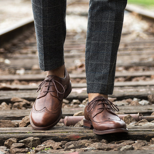 Carved Men's Leather Shoes Vintage Old Derby Men