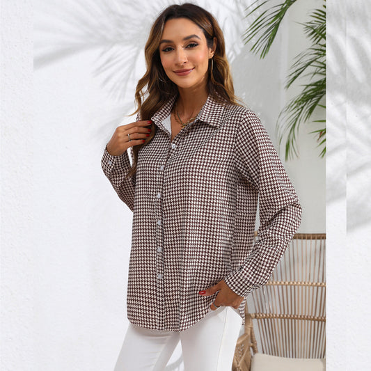 Women's Casual Long Sleeve Shirt With Lapel And Plaid Pattern