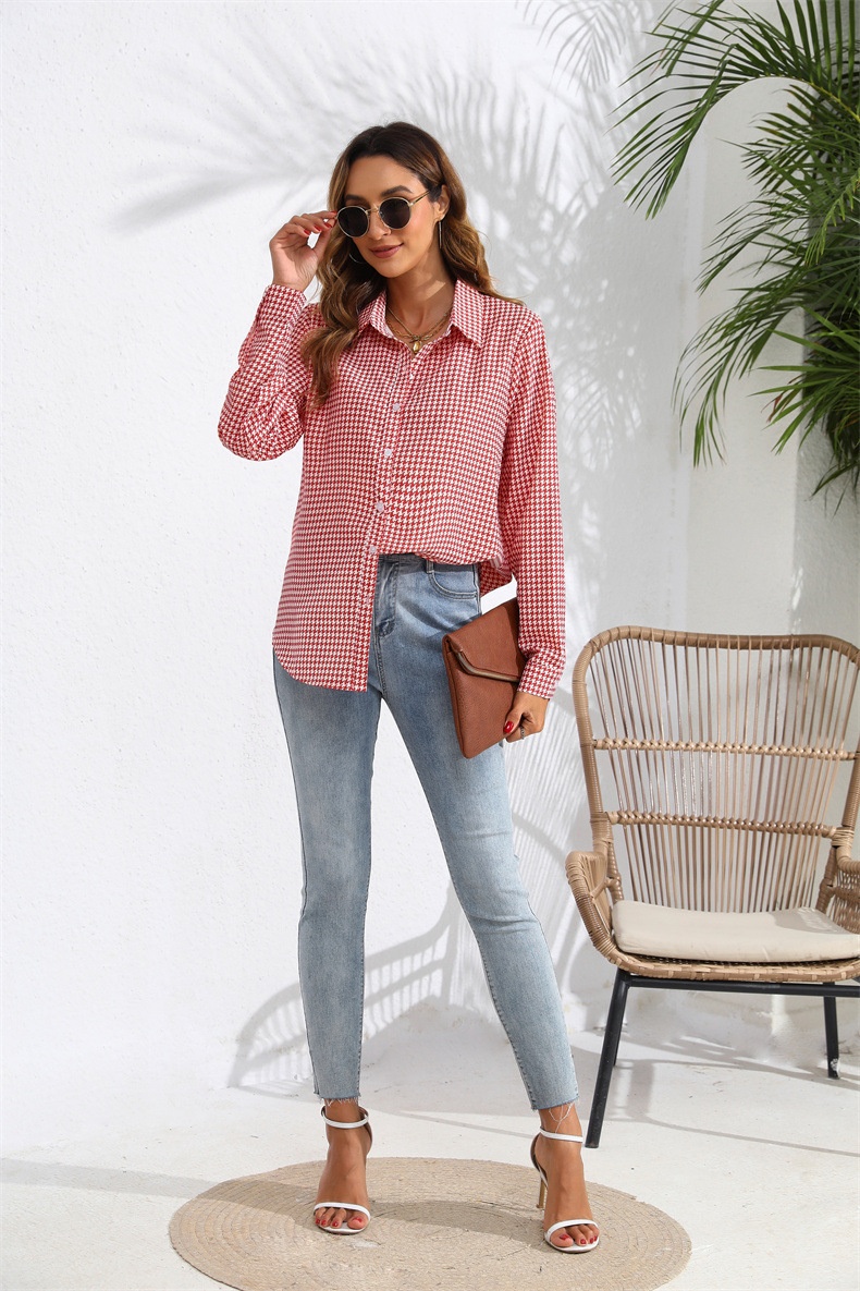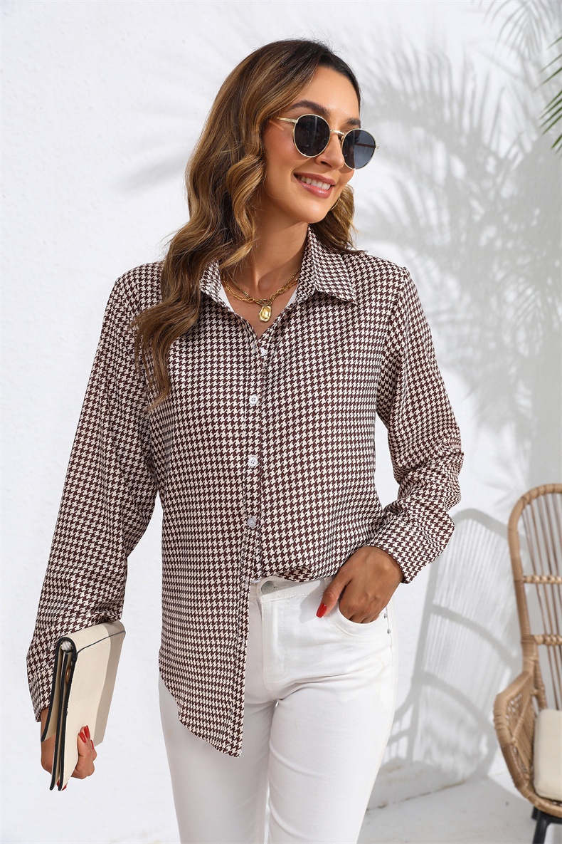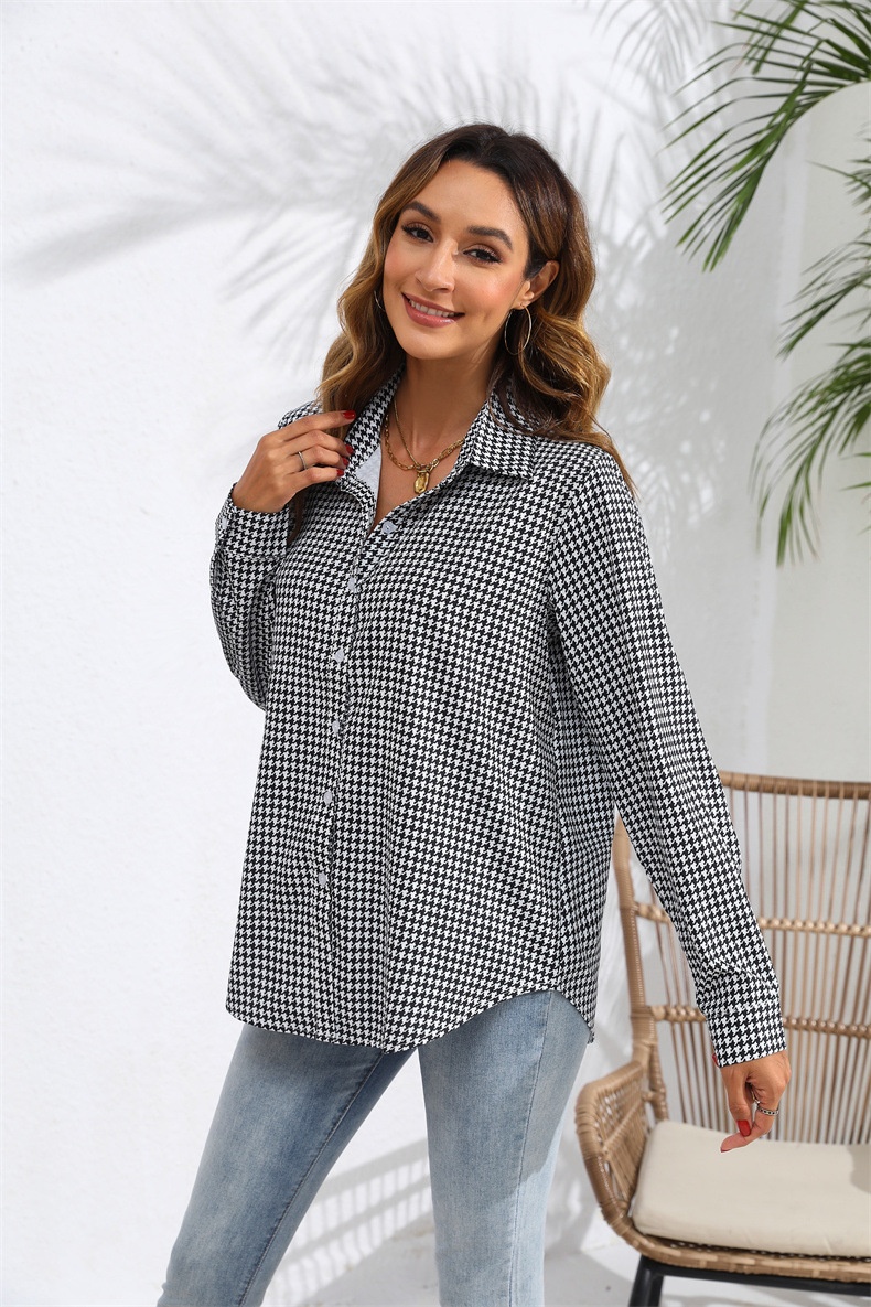 Women's Casual Long Sleeve Shirt With Lapel And Plaid Pattern